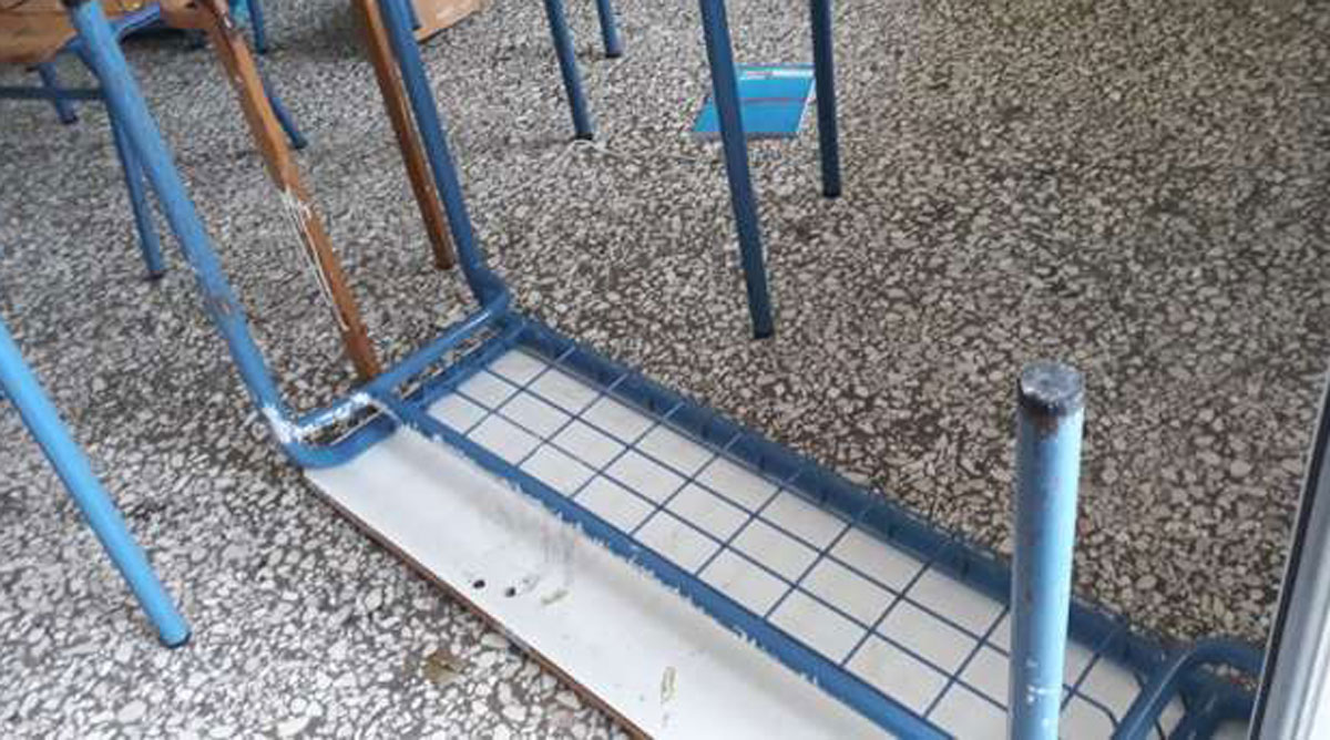 Μπαίνοντας στη τάξη είδα αναποδογυρισμένα θρανία, το παράθυρο ανοιχτό, βιβλία πεταμένα, να έχει καταστραφεί ολοκληρωτικά αερόθερμο καλοριφέρ, βλάβες στον επιτοίχιο διαδραστικό προτζέκτορα. Αποτσίγαρα και κουτάκια παντού κάτω και κάποιος πραγματοποίησε την ανάγκη του μέσα στην σχολική αίθουσα. Όλα έγιναν το σαββατοκύριακο, είδατε και τις ζημιές στο μπάσκετ και στο ποδόσφαιρο πίσω στους χώρους άθλησης, στην υδρορροή.