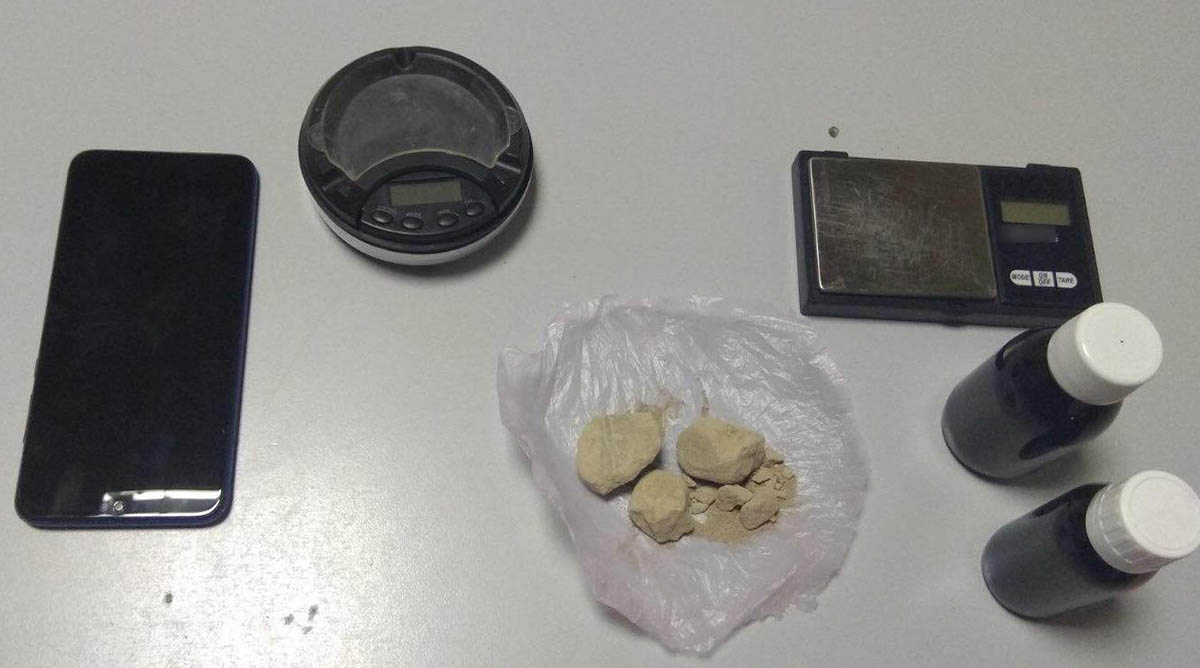 Βρέθηκαν και κατασχέθηκαν, 30 γραμμάρια ηρωίνης σε μορφή βράχου, 218 γραμμάρια υγρή μεθαδόνη και 2 ηλεκτρονικές ζυγαριές