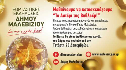 Read MoreΜαθαίνουμε να κατασκευάζουμε «Το Αστέρι της Βηθλεέμ» με το Δήμο Μαλεβιζίου