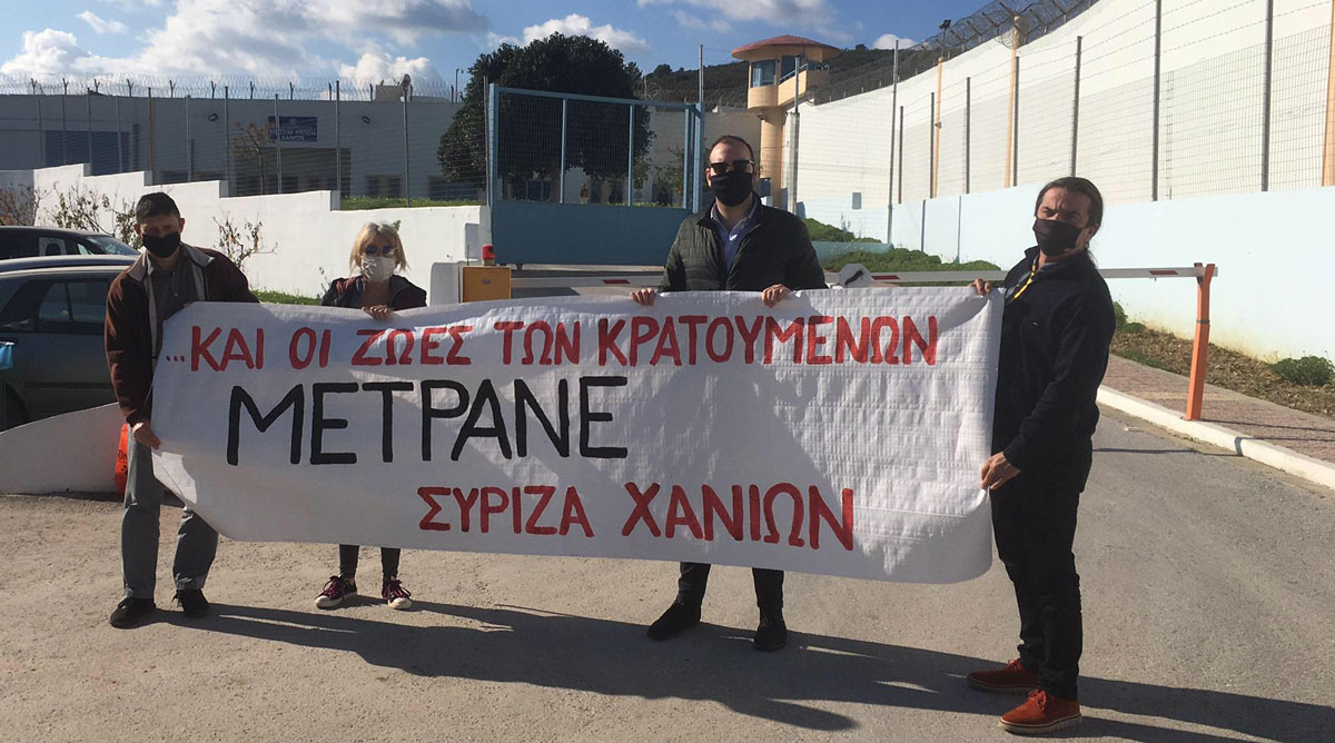 Αντιπροσωπεία του ΣΥΡΙΖΑ – ΠΣ Χανίων και η Νεολαία ΣΥΡΙΖΑ Χανίων βρέθηκαν έξω από τις φυλακές της Αγυιάς για να φωνάξουν «Και οι ζωές των κρατουμένων μετράνε» καθώς το υπουργείο ΠΡΟ.ΠΟ. σφυρίζει αδιάφορα και υποχρεώνει χιλιάδες ανθρώπους να ζουν στοιβαγμένοι, ο ένας πάνω στον άλλο, με τα κρούσματα του covid 19 να σαρώνουν.