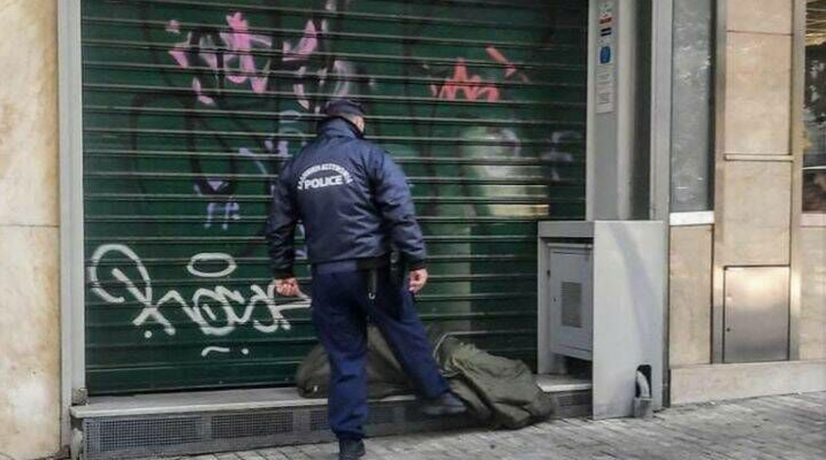 Ποικίλες αντιδράσεις και εν πολλοίς αγανάκτηση προκάλεσε η φωτογραφία που κάνει το γύρο του διαδικτύου τις τελευταίες ώρες και δείχνει έναν αστυνομικό στο κέντρο της Αθήνας να σπρώχνει με το πόδι του έναν άστεγο.