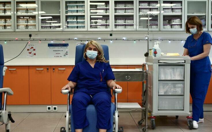 Μία ιστορική στιγμή σημειώθηκε στον Ευαγγελισμό, καθώς η Ευσταθία Καμπισιούλη, νοσηλεύτρια σε ΜΕΘ του ίδιου νοσοκομείου, έγινε ο πρώτος άνθρωπος στην Ελλάδα που έκανε το εμβόλιο κατά του κορονοϊού.