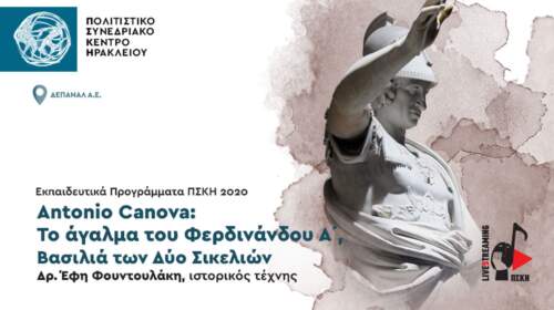 Εισηγήτρια: Δρ. Έφη Φουντουλάκη, ιστορικός τέχνης Με τη δεύτερη ομιλία του κύκλου των εκπαιδευτικών προγραμμάτων του Πολιτιστικού Συνεδριακού Κέντρου Ηρακλείου – ΠΣΚΗ, “Τέχνη και Πολιτική Επικοινωνία | Antonio Canova: Άγαλμα του Φερδινάνδου Α΄, Βασιλιά των Δύο Σικελιών”, με εισηγήτρια την ιστορικό τέχνης, Δρ. Έφη Φουντουλάκη, συνεχίζεται την Πέμπτη 3 Δεκεμβρίου, στις 19:00, το πρόγραμμα μεταδόσεων με Live Streaming του ΠΣΚΗ.…