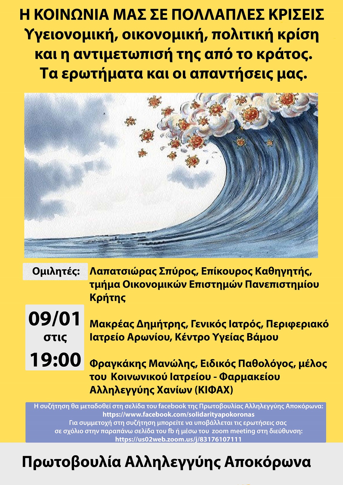 - Η συζήτηση θα μεταδοθεί στη σελίδα του facebook της Πρωτοβουλίας Αλληλεγγύης Αποκόρωνα: