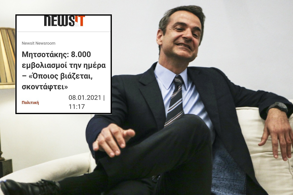 Εν μέσω πανδημίας, με περισσότερους από 5.000 νεκρούς στη μικρή Ελλάδα, που καταγράφει μια από τις χειρότερες επιδόσεις σε ολόκληρο τον κόσμο, ο άνθρωπος μάς είπε ότι “όπως, άλλωστε, λέει και ο σοφός ελληνικός λαός μας, όποιος βιάζεται σκοντάφτει. Δεν έχει νόημα να επιταχύνουμε περαιτέρω, όταν τα εμβόλια που έχουν αδειοδοτηθεί μέχρι σήμερα είναι μόλις δύο, οι διαθέσιμες δομές ακόμα σχετικά περιορισμένες και φυσικά η όλη επιχείρηση αποτελεί κάτι πρωτόγνωρο για τη χώρα μας και φυσικά για τον υπόλοιπο κόσμο!