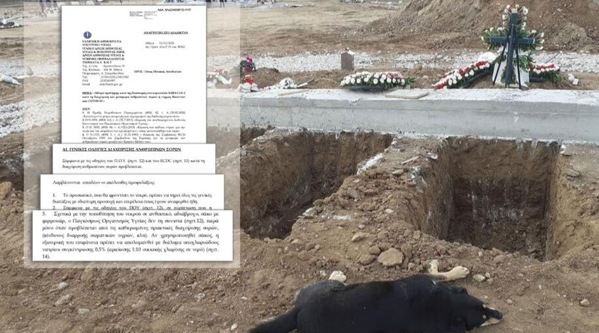 Αυτή είναι η τακτική που ακολουθείται, παρά τη ρητή οδηγία του ΠΟΥ, με την οποία δεν συνιστά την τοποθέτηση του νεκρού σώματος σε ανθεκτικό, αδιάβροχο, πλαστικό σάκο με φερμουάρ· οδηγία την οποία υιοθετεί και ο ΕΟΔΥ. Ομως η κυβέρνηση, παρόλο που επικαλείται στις εγκυκλίους της την οδηγία του ΠΟΥ, δεν έχει φροντίσει για την εφαρμογή της και όλοι οι νεκροί της πανδημίας ενταφιάζονται με διπλό πλαστικό σάκο, γεγονός που αναμένεται να έχει ολέθριες συνέπειες κατά τη διαδικασία της εκταφής. «Ούτε στα πέντε ούτε στα δέκα ούτε στα είκοσι χρόνια δεν υπάρχει περίπτωση αποσύνθεσης μέσα στο πλαστικό· θα αντιμετωπίσουμε μακάβρια θεάματα», τονίζει στην «Εφ.Συν.» ο κ. Αγγελέτος.