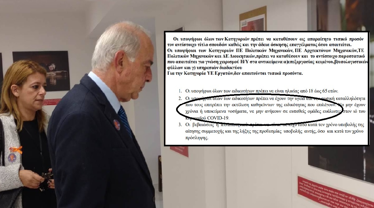 Το να ζητάς “υγεία”, “φυσική καταλληλότητα, κ.τ.λ.”, προαπαιτούμενο είναι να διαθέτεις εσύ αυτά τα χαρακτηριστικά. Όταν όμως εκδίδεις τέτοιες αισχρές (για να μιλήσω ήπια) ανακοινώσεις από τη θέση εκπροσώπου ΟΛΩΝ των πολιτών σου (συμπεριλαμβανομένων και των μη αρτιμελών και υγειών, ΑΜΕΑ, κ.τ.λ. που όμως έχουν τις ίδιες ανάγκες και ικανότητες με τους άλλους) αποδείχνεις ότι πρώτα απ’ όλα εσύ δεν διαθέτεις ούτε την απαιτούμενη “ψυχική υγεία”, ούτε και την αναγκαία “λογική υγεία” και επομένως η κατάστασή σου δεν σου “επιτρέπει την εκτέλεση των καθηκόντων της ειδικότητάς σου “.