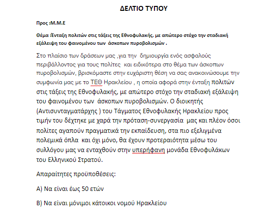 Ποιος είναι όμως ο σύλλογος με τον οποίο συμφώνησε (κατά την ανακοίνωση) ο αντισυνταγματάρχης διοικητής του Τμήματος Εθνοφυλακής Ηρακλείου, να εντάσσει εθνοφύλακες μέσω facebook;