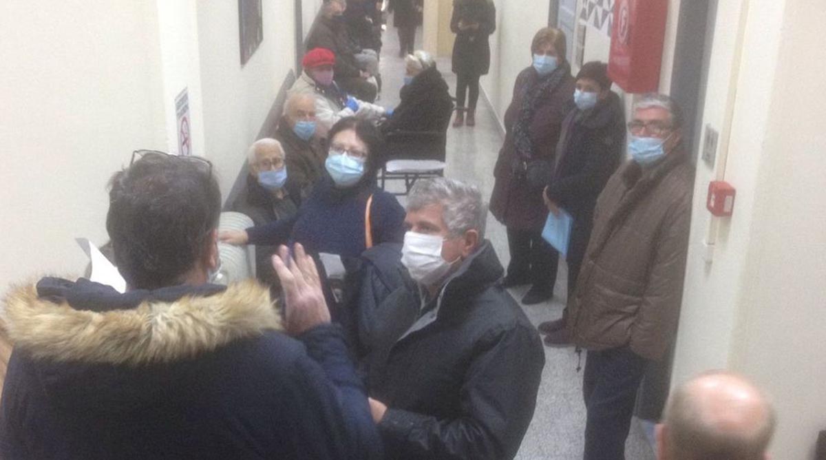 Εν τω μεταξύ σήμερα στο ίδιο νοσοκομείο εξυπηρετούνται 48 ραντεβού για εμβολιασμό. «Ήρθαν ηληκιωμένα άτομα μη αυτοεξυπηρετούμενα από το πρωί την ώρα του ραντεβού τους και περίμεναν ώρες μέσα στο κρύο. Άνοιξε η πόρτα του εμβολιαστικού κέντρου και μετά περίμεναν ένας πάνω στον άλλον. Παρά τις υποδείξεις δεν τηρούσαν αποστάσεις», αναφέρει ενώ όπως εξηγεί ο πρόεδρος της ΠΕΟΔΗΝ υπάρχει ένας παθολόγος γιατρός που υπηρετεί στο νοσοκομείο για 450 νοσηλευόμενους ασθενείς και για να κάνει τα εμβόλια. Το πρωί εξέταζε έκτακτο περιστατικό και καθυστέρησε.