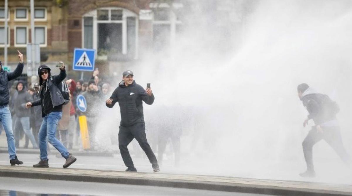 Τουλάχιστον μία αύρα εκτόξευσης νερού υπό πίεση, αλλά και ειδικά εκπαιδευμένα σκυλιά θεάθηκαν στη Μουζέουμπλαϊν, μια πλατεία στο κέντρο του Άμστερνταμ όπου είχαν συγκεντρωθεί εκατοντάδες διαδηλωτές, μετέδωσε η δημόσια τηλεόραση NOS.
