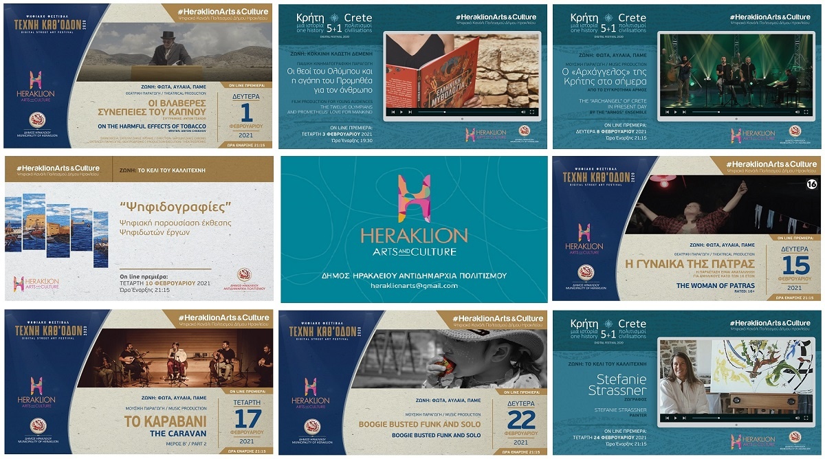 Με συναυλίες, θεατρικές παραστάσεις, παρουσιάσεις και παιδικά παραμύθια συνεχίζεται τον Φεβρουάριο, το πρόγραμμα των προβολών στο ψηφιακό κανάλι πολιτισμού του Δήμου Ηρακλείου – Heraklion Arts and Culture.