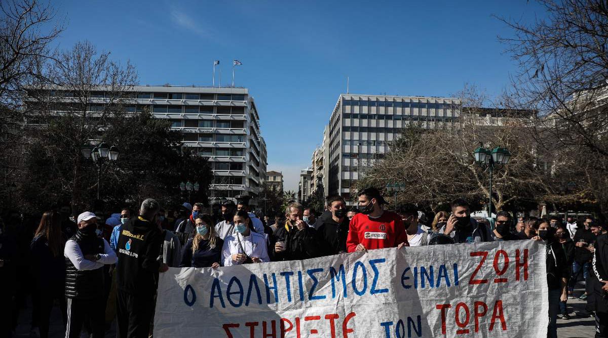 Συγκέντρωση πραγματοποίησαν ερασιτέχνες αθλητές, αθλήτριες και προπονητές, σήμερα (5/2) στην πλατεία Συντάγματος, ώστε να διαμαρτυρηθύν για τη συνεχιζόμενη αναστολή των ερασιτεχνικών αθλητικών δραστηριοτήτων, που έχουν σταματήσει εδώ και περίπου 11 μήνες, ζητώντας από την Πολιτεία και τους ειδικούς, την άδεια, για να επιστρέψουν στις προπονήσεις και -σταδιακά- στους αγώνες, έχοντας ως βασικό σύνθημα «Ο Αθλητισμός είναι ζωή, στηρίξτε τον τώρα».