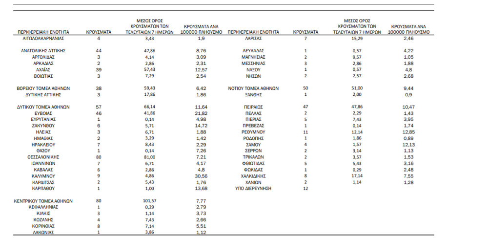 Τέλος, έχουμε 25 νέους θανάτους από τη νόσο COVID-19, φθάνοντας τους 5997 θανάτους συνολικά στη χώρα, εκ των οποίων 3525 (58.8%) άνδρες. Η διάμεση ηλικία των θανόντων συμπολιτών μας ήταν τα 79 έτη και το 95.6% είχε κάποιο υποκείμενο νόσημα ή/και ηλικία 70 ετών και άνω.