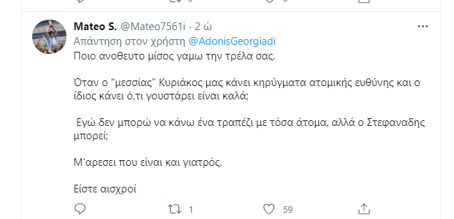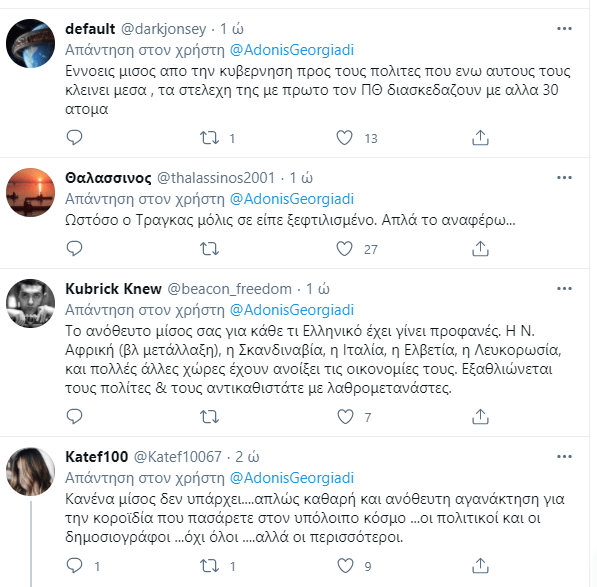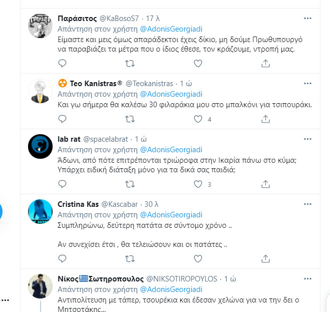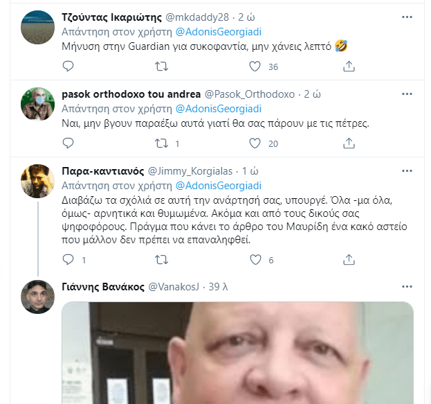 Την “έκανε” πάλι ο μέγας Άδωνης Γεωργιάδης! Την οργή ολόκληρης της κοινωνίας για τα νέα καμώματα Μητσοτάκη στην Ικαρία και το κορονογεύμα, την “ερμηνεύει” ως… “καθαρό και ανόθευτο μίσος στην Ικαρία”, με σημερινό tweet του. Βέβαια στην πραγματικότητα κάνει αναπαραγωγή άρθρου του μεγάλου Μαυρίδη από το liberal.gr…