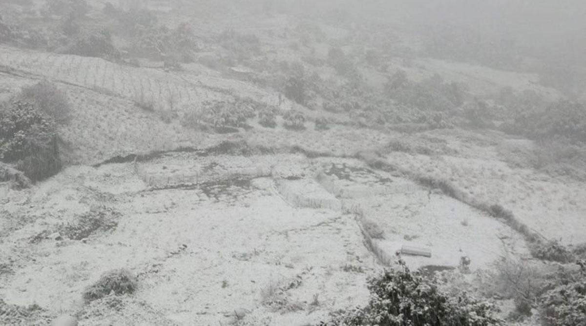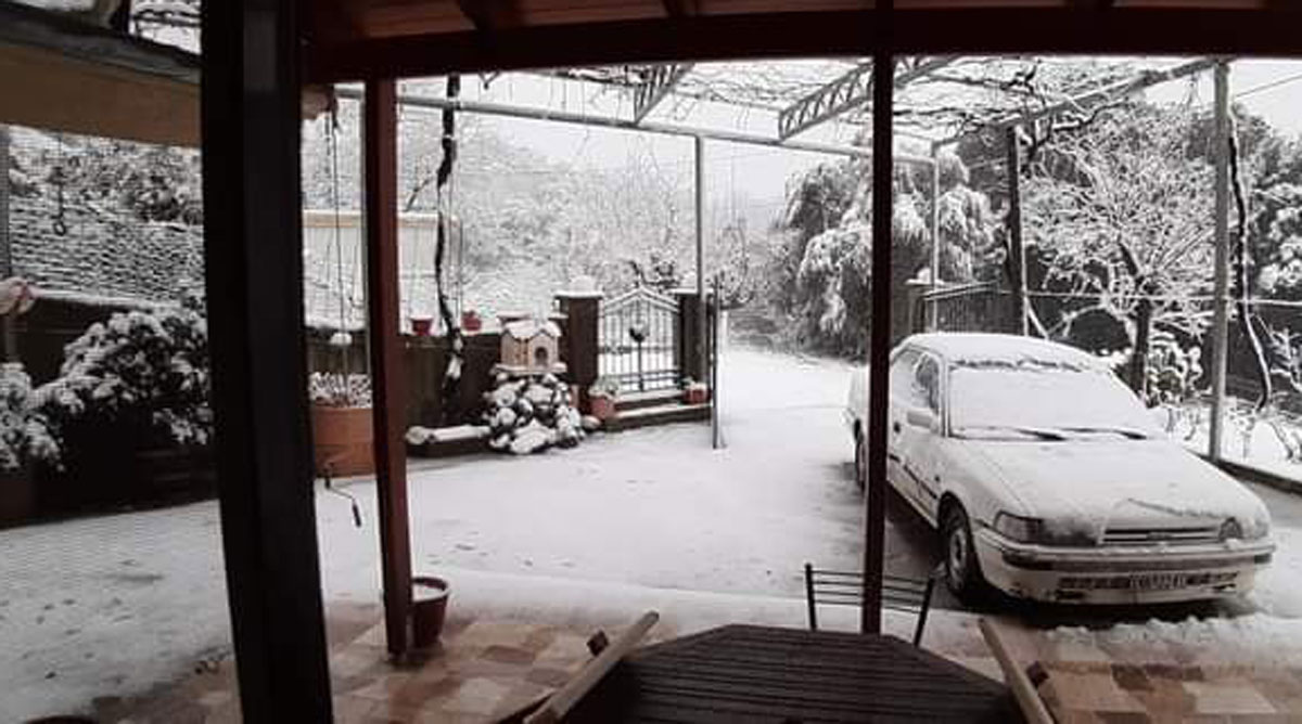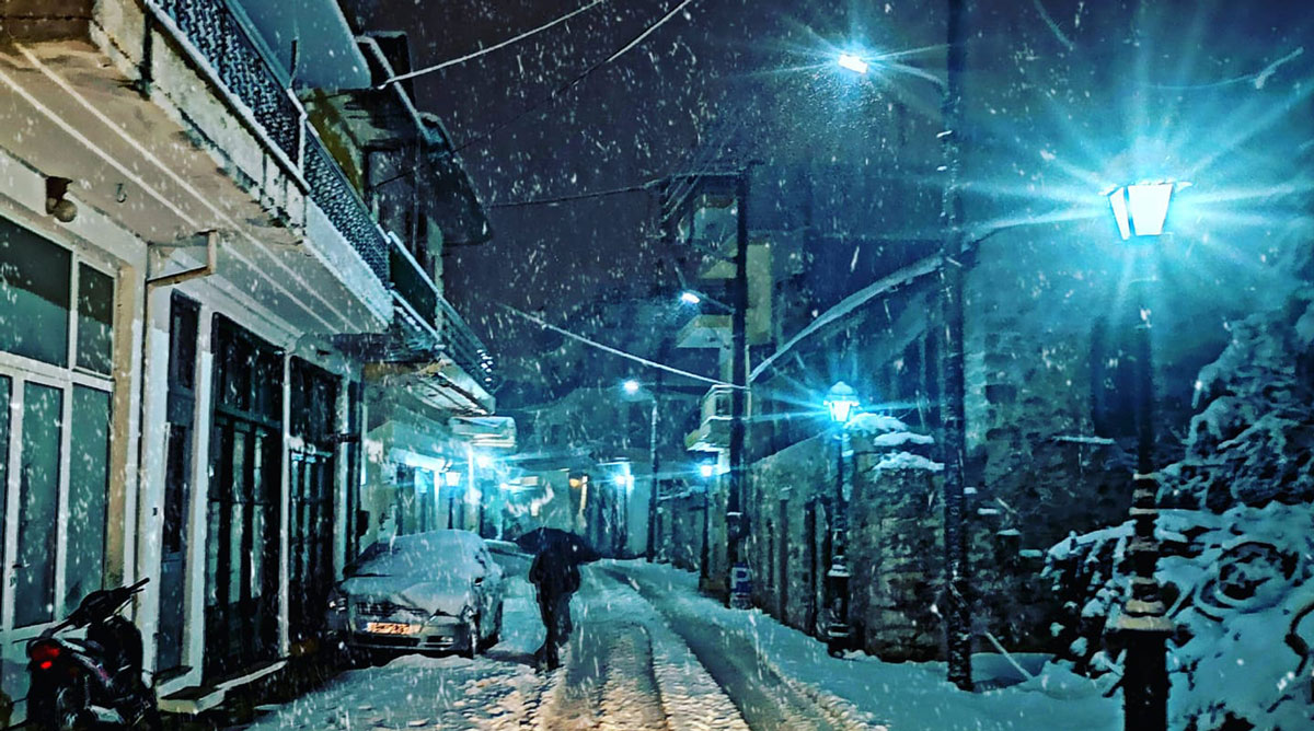 Φωτογραφίες με χιόνια δημοσιεύουν πολίτες από πολλές περιοχές του νησιού.