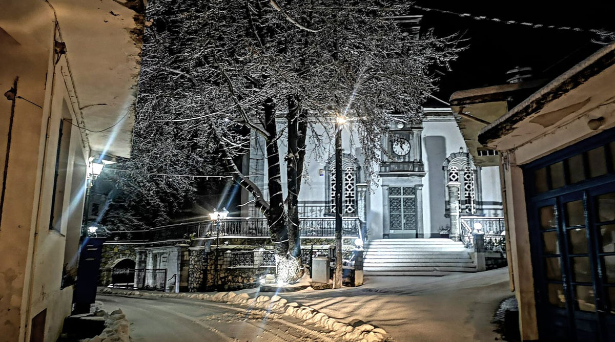 Ένα μεγάλο τμήμα του από τον Απομαρμά έως τη διασταύρωση του Αγίου Θωμά είναι σκεπασμένο με χιόνι.