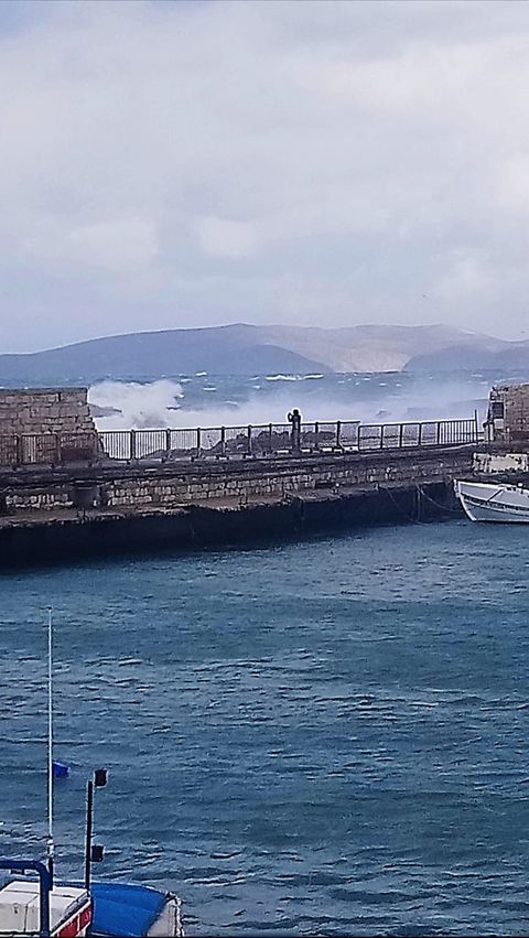 Σε αυτές έρχονται να προστεθούν οι εντυπωσιακές φωτογραφίες που μας έστειλε η αναγνώστριά μας, κ. Αλέκα Δημητρούδη, με τεράστια κύματα να σφυροκοπούν τον αγέρωχο φρουρό του Ηρακλείου.