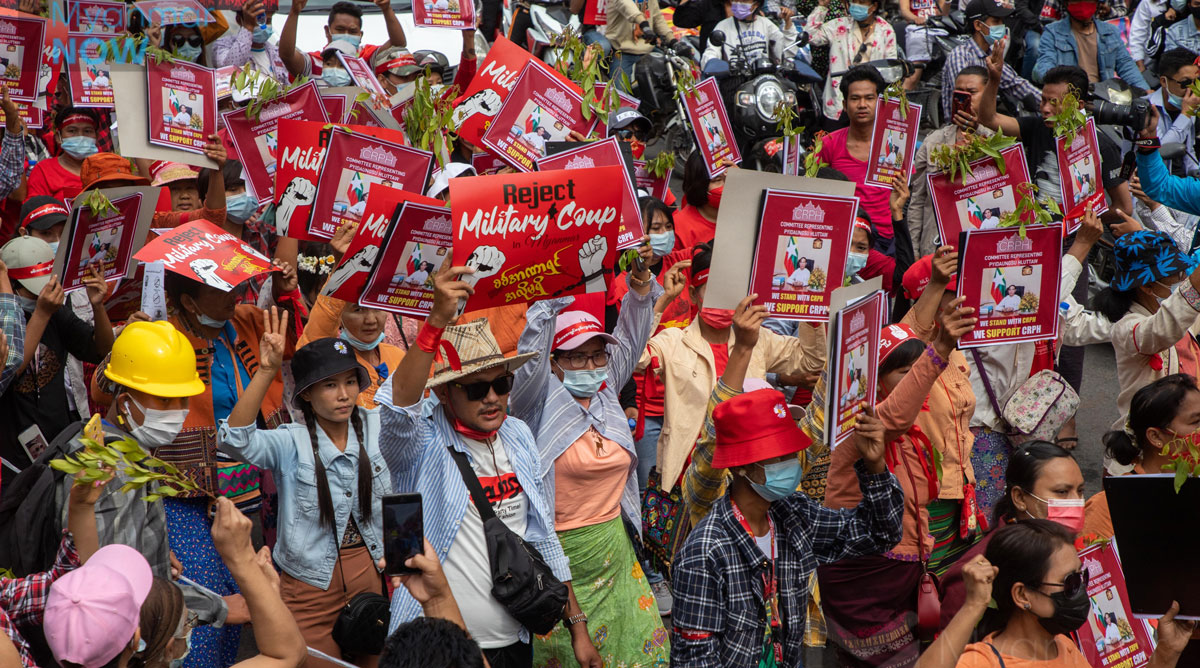 Σχεδόν τρεις εβδομάδες μετά το πραξικόπημα της 1ης Φεβρουαρίου, οι κινητοποιήσεις διαμαρτυρίας δεν έχουν αποδυναμωθεί και δεκάδες χιλιάδες άνθρωποι κατέκλυσαν τους δρόμους των μεγάλων πόλεων της χώρας σήμερα.