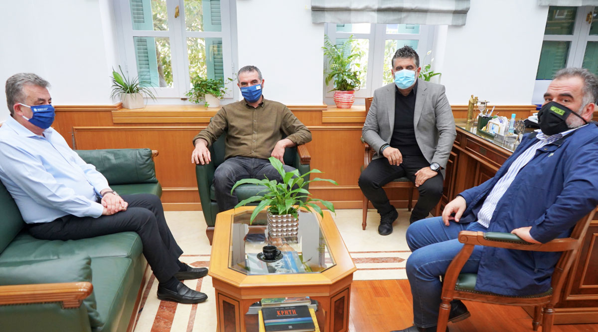 Στη συνάντηση που έγινε παρουσία του Αντιπεριφερειάρχη Πρωτογενή Τομέα Μανόλη Χνάρη μετείχαν ο Πρόεδρος της ΕΑΣΗ Σταύρος Γαβαλάς και ο Αντιπρόεδρος της Ένωσης Μύρων Χιλετζάκης.