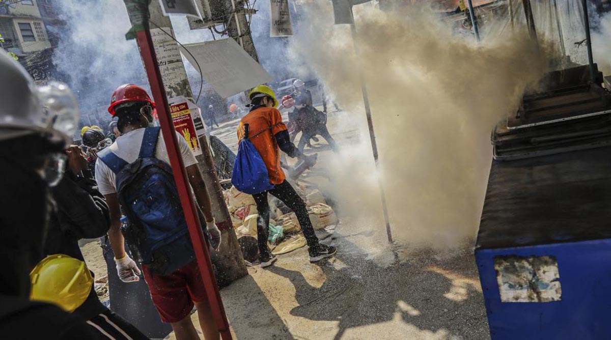 Στη συνοικία Σαν Τσαούνγκ της οικονομικής πρωτεύουσας Ρανγκούν, η αστυνομία κατέστρεψε αυτοσχέδια οδοφράγματα που έστησαν οι διαδηλωτές και έκανε χρήση δακρυγόνων και χειροβομβίδων κρότου λάμψης για να διαλύσει μικρές συγκεντρώσεις.