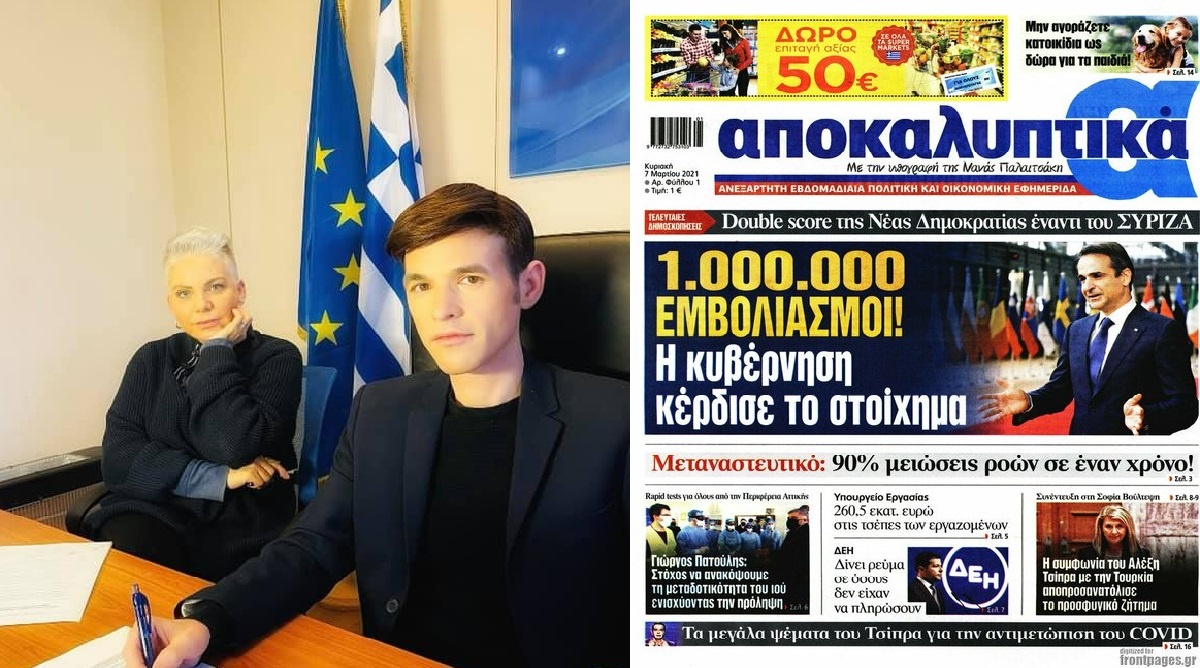 Την ώρα που παραδοσιακά έντυπα ή άλλα μέσα ενημέρωσης αδυνατούν να συνεχίζουν ή μόλις και μετά βίας υπάρχουν στις συγκεκριμένες συνθήκες, το σύστημα Μητσοτάκη μάς δείχνει τι ακριβώς θέλει για “ενημέρωση”: Νανά Παλαιτσάκη (των κουτσομπολίστικων τηλεπαραθύρων) και Μένιος Φουρθιώτης (που εκτός από τα κουτσομπολιά έκανε “καριέρα” και ως πάτρονας γνωστής πορνοστάρ), εκείνος ο γνωστός ντε που ετοιμάζεται να γίνει βουλευτής της ΝΔ (!), βγάζουν αύριο ένα έντυπο αποθέωσης του Μητσοτάκη!