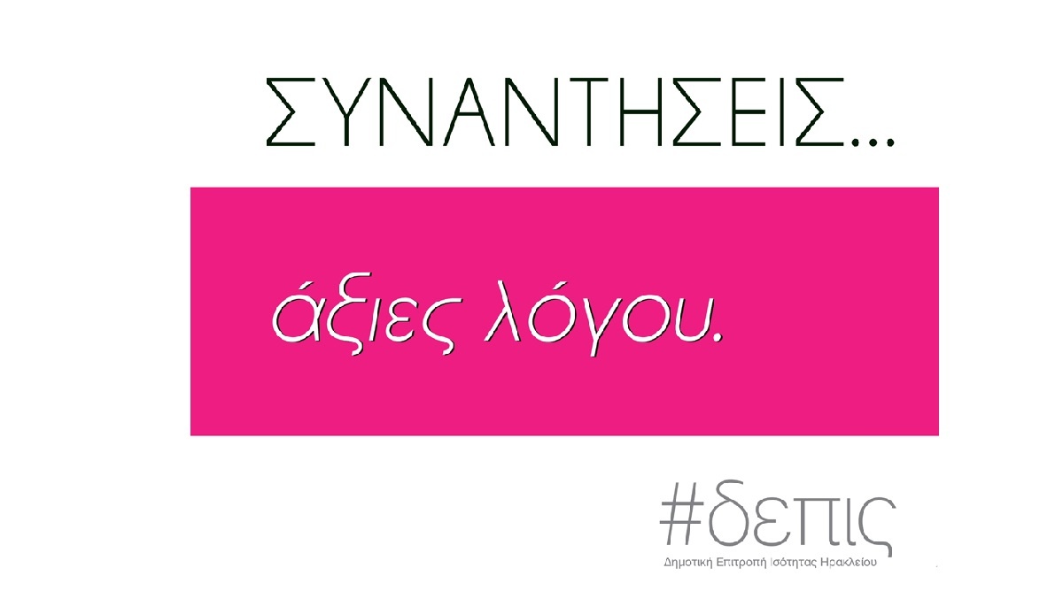 Σειρά εκδηλώσεων με τίτλο “ΣΥΝΑΝΤΗΣΕΙΣ… άξιες λόγου” προγραμματίζει η Δημοτική Επιτροπή Ισότητας Ηρακλείου με αφορμή την 8η Μαρτίου, μέρα που έχει καθιερωθεί παγκοσμίως, ως ημέρα μνήμης των αγώνων του κινήματος για τα δικαιώματα των γυναικών. Οι εκδηλώσεις στοχεύουν στην καταπολέμηση των διακρίσεων, στην ευαισθητοποίηση της τοπικής κοινωνίας ενάντια σε κάθε μορφή βίας και στην ενδυνάμωση κάθε ανθρώπου προκειμένου να ενεργοποιήσει τη θέληση για προσωπική, κοινωνική ανάπτυξη & δημιουργία.