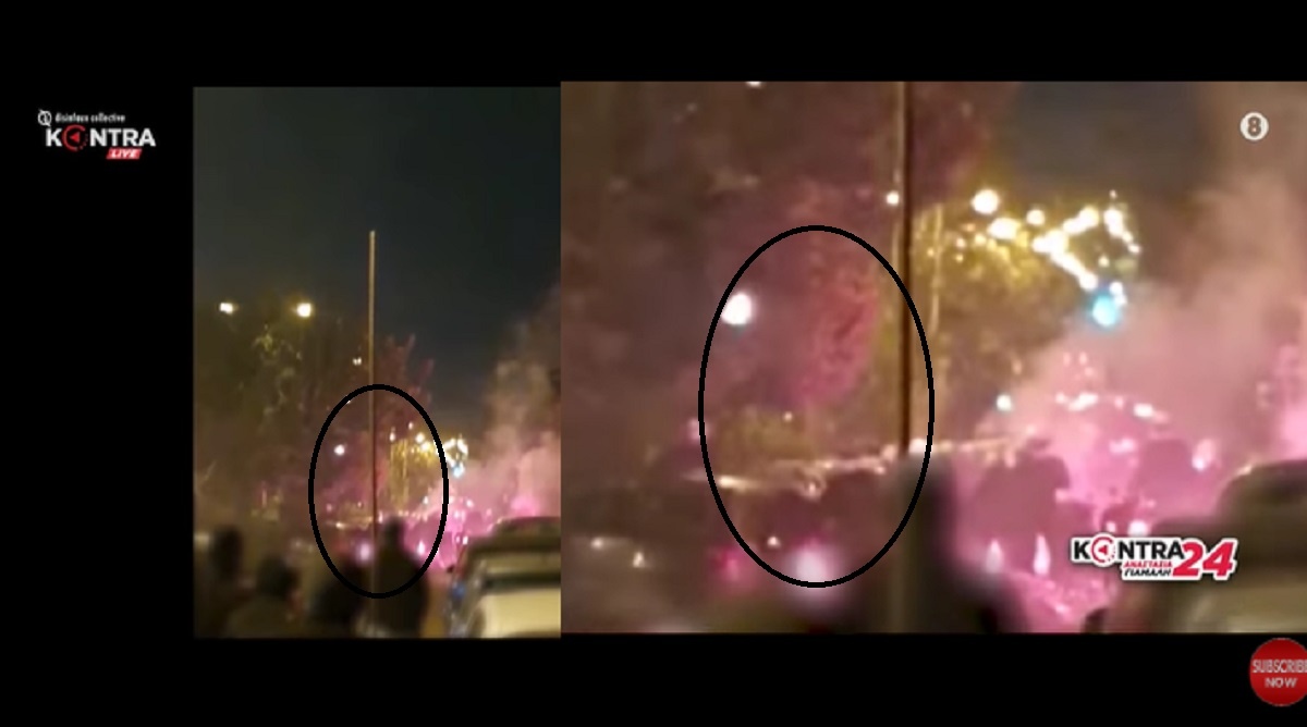 Το βίντεο προβλήθηκε επεξεργασμένο και σε αργή κίνηση από την τηλεοπτικό σταθμό Kontra και αποτυπώνει έναν άνδρα με που φορά λευκό κράνος (που παραπέμπει σε αστυνομικό) πετά μία μολότοφ προς την πλευρά των διαδηλωτών και προέρχεται από την οδό Νικολάου Πλαστήρα, περίπου στις 19:20.