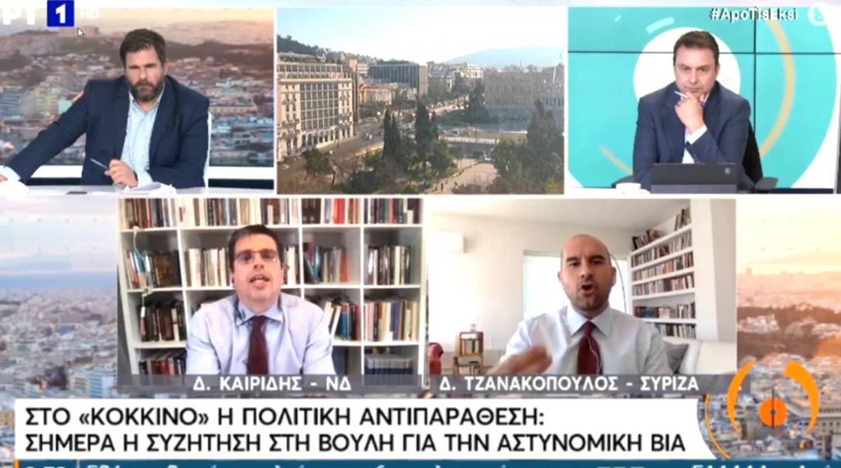 Ο βουλευτής της ΝΔ Δημήτρης Καιρίδης ειρωνευόταν επιδεικτικά τον ΣΥΡΙΖΑ – Προοδευτική Συμμαχία και απεύθυνε σειρά χαρακτηρισμών στον γραμματέα του ΣΥΡΙΖΑ – Προοδευτική Συμμαχία Δημήτρη Τζανακόπουλο από την αρχή της συζήτησης στην πρωινή ενημερωτική εκπομπή της κρατικής τηλεόρασης, όπως «ήρθατε πυραυλωμένος», ωστόσο ήταν η τελευταία του τοποθέτηση που οδήγησε στην έκρηξή του και την αποχώρησή του.
