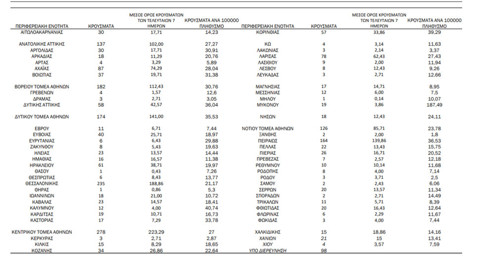 1 Με βάση τα επιβεβαιωμένα κρούσματα των τελευταίων 7 ημερών, 59