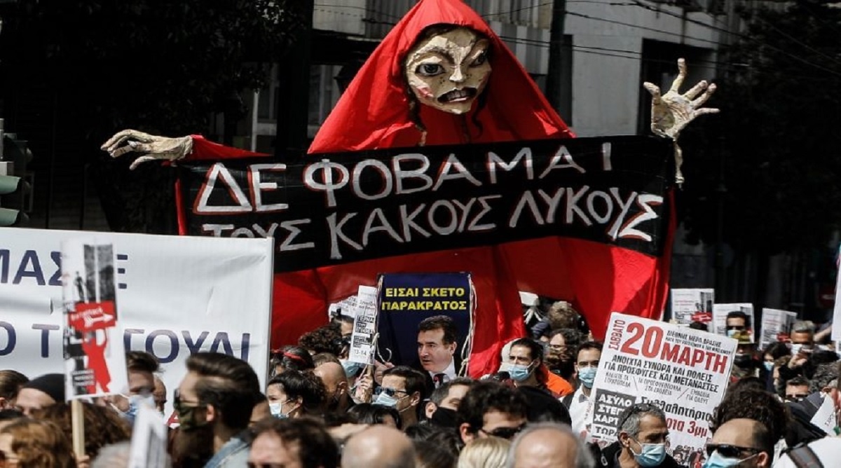 Το κέντρο της Αθήνας πλημμύρισε από καλλιτέχνες, οι οποίοι κάνουν πορεία και διεκδικούν όπως αναφέρουν «μια ελεύθερη τέχνη και μια ελεύθερη κοινωνία».