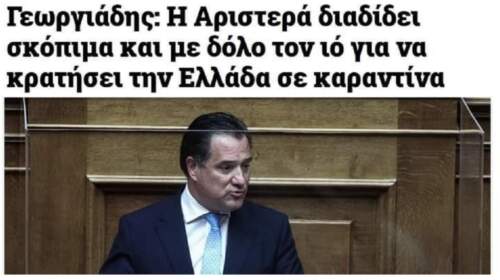 Διαβάστε τι είπε χθες ο άνθρωπος που είναι αντιπρόεδρος της ΝΔ και υπουργός του Μητσοτάκη σε κορυφαίο υπουργείο. Τα είπε σε συνέντευξή του στον ραδιοφωνικό σταθμό της Θεσσαλονίκης Status 107,7. Δείτε: Γεωργιάδης: Η Αριστερά διαδίδει σκόπιμα και με δόλο τον ιό για να κρατήσει την Ελλάδα σε καραντίνα «Εδώ, είμαστε φυλακισμένοι σε έναν ανήθικο εκβιασμό της Αριστεράς. Ξέρουν ότι δεν μπορούμε…