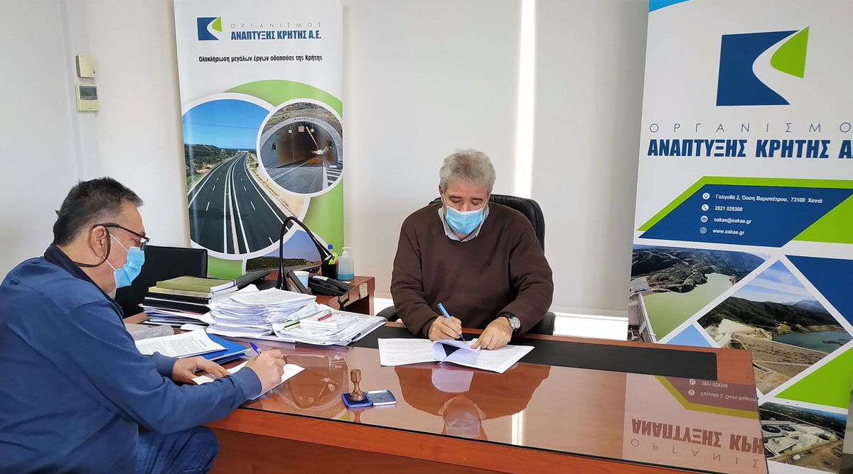 Την απρόσκοπτη συνέχιση της συνεργασίας τους, επισφράγισαν την Πέμπτη 18/03/2021 ο Οργανισμός Ανάπτυξης Κρήτης (Ο.Α.Κ. Α.Ε.) και ο Τοπικός Οργανισμός Εγγείων Βελτιώσεων (Τ.Ο.Ε.Β.) Δυτικού Αποκόρωνα. Οι κύριοι Άρης Παπαδογιάννης Διευθύνων Σύμβουλος του Ο.Α.Κ. και Γιάννης Σπανουδάκης Πρόεδρος του Τ.Ο.Ε.Β Δυτικού Αποκόρωνα, υπέγραψαν την ανανέωση – για ένα ακόμη έτος – της μεταξύ τους σύμβασης, για την διαχείριση του νερού, από τις πηγές που βρίσκονται εντός των ορίων ευθύνης του εν λόγω Τ.Ο.Ε.Β.