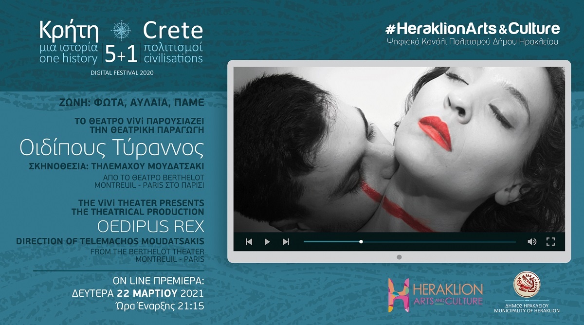 Το έργο του μεγάλου τραγικού ποιητή Σοφοκλή, «Οιδίπους Τύραννος», παρουσιάζει τη Δευτέρα 22 Μαρτίου 2021 και ώρα 21:15 το ψηφιακό κανάλι πολιτισμού του Δήμου Ηρακλείου.