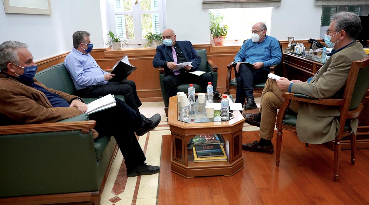 Με την πρυτανική αρχή του Πανεπιστημίου Κρήτης συναντήθηκε σήμερα ο Περιφερειάρχης Κρήτης στο πλαίσιο της παραγωγικής συνεργασίας που διατηρεί η Περιφέρεια Κρήτης με τα ερευνητικά και τα πανεπιστημιακά ιδρύματα του νησιού.