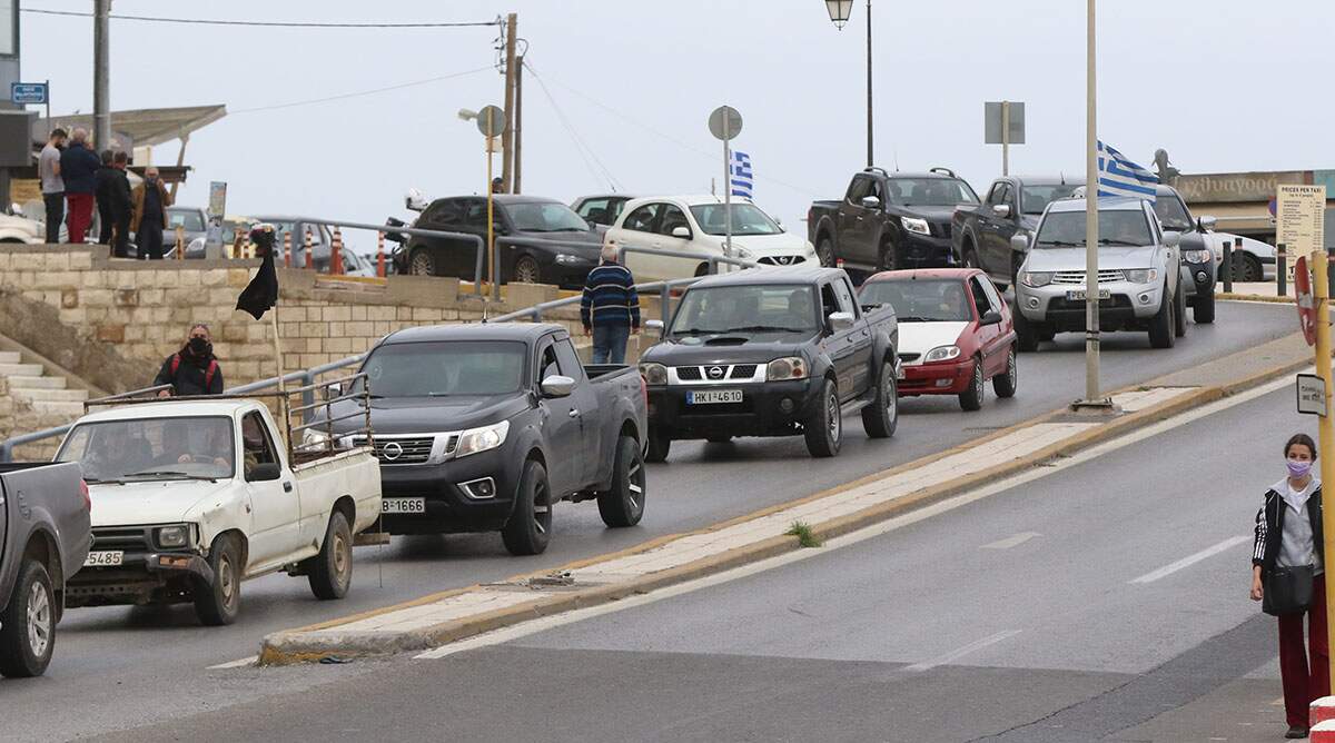 Η κινητοποίηση των αγροτών που έφθασαν στο σημείο συνάντησης με τα οχήματά τους θα συνεχιστεί με την διαμαρτυρία τους στην Διεύθυνση Δασών Χανίων.