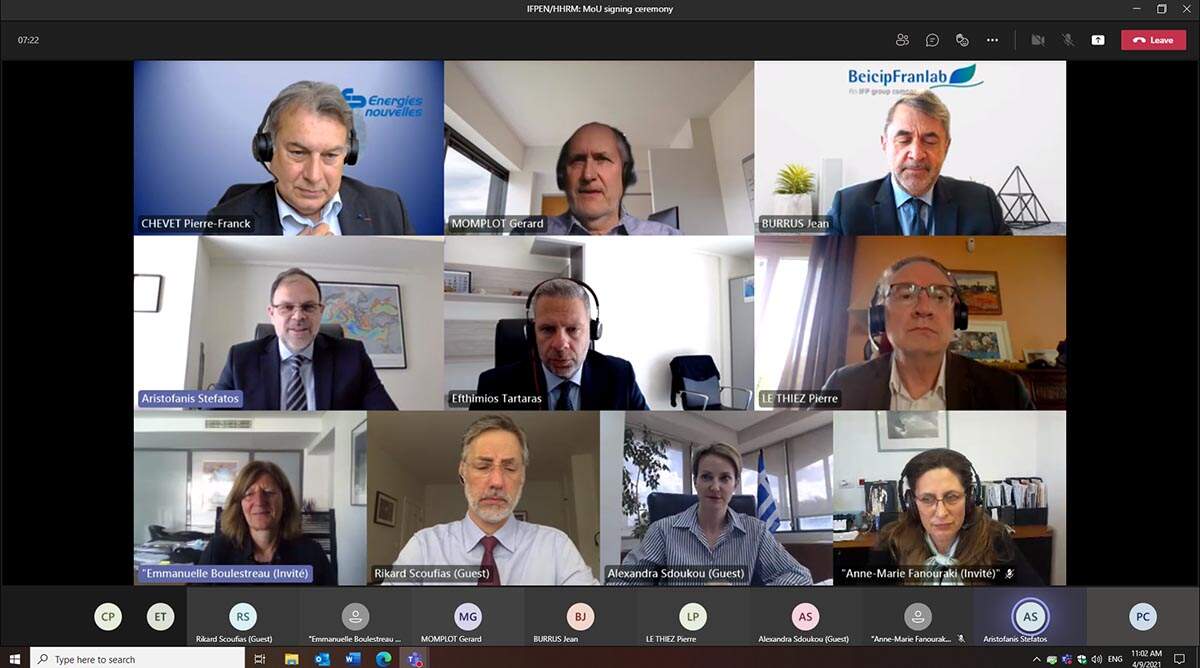 Στο πλαίσιο αυτό, η ΕΔΕΥ και το IFPEN σε ειδική διαδικτυακή εκδήλωση την Παρασκευή, 9 Απριλίου, επισημοποίησαν την υπογραφή σχετικού Μνημονίου Συνεργασίας το οποίο προβλέπει πιθανές συνέργειες σε ένα ευρύ φάσμα δραστηριοτήτων όπως είναι η χρήση προηγμένων τεχνολογιών για την αξιολόγηση των υπεράκτιων και χερσαίων πόρων υδρογονανθράκων στην ελληνική επικράτεια, τη στρατηγική υποβολής προσφορών και οργάνωση μελλοντικών παραχωρήσεων, προς όφελος της Ελλάδας και τη μεταφορά τεχνογνωσίας και εκπαίδευσης στο επιστημονικό προσωπικό της ΕΔΕΥ. Η ΕΔΕΥ θεωρεί ότι μπορεί να επωφεληθεί από τη σημαντική εμπειρία του IFPEN στην περιοχή της Ανατολικής Μεσογείου για την περαιτέρω ανάπτυξη των δυνατοτήτων που υπάρχουν για τον τομέα στην Ελλάδα.