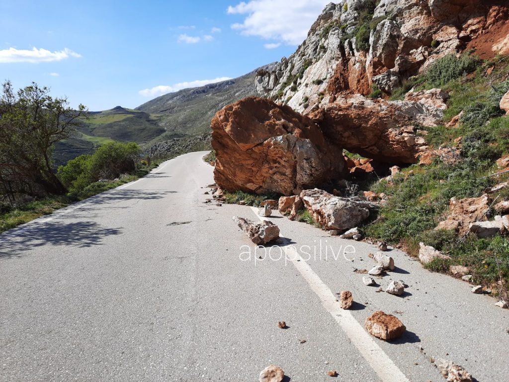 Κατολίσθηση μεγάλου βράχου σε επαρχιακό δρόμο της Κρήτης