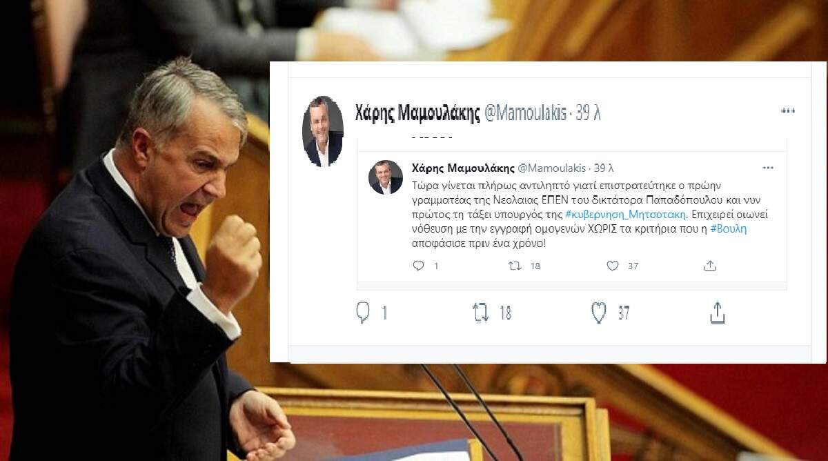 “Τώρα γίνεται πλήρως αντιληπτό γιατί επιστρατεύτηκε ο πρώην γραμματέας της Νεολαιας ΕΠΕΝ του δικτάτορα Παπαδόπουλου και νυν πρώτος τη τάξει υπουργός της #κυβερνηση_Μητσοτακη. Επιχειρεί οιωνεί νόθευση με την εγγραφή ομογενών ΧΩΡΙΣ τα κριτήρια που η #Βουλη αποφάσισε πριν ένα χρόνο!”