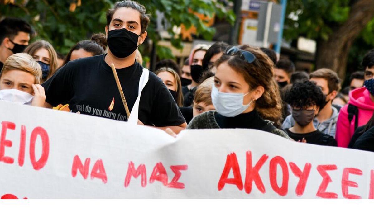 Με αφορμή το άνοιγμα των λυκείων και την εξάπλωση του πανδημίας του κορονοϊού, οι συγκεντρωμένοι ζήτησαν «ανοιχτά και ασφαλή σχολεία» και έκαναν λόγο για διαρκές μορφωτικό έγκλημα, αποδομώντας το επιχείρημα της κυβέρνησης που στηρίζεται στα self tests.