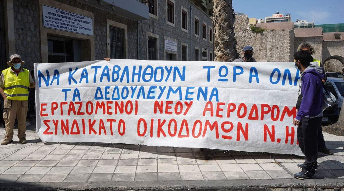 Παράλληλα, διαμαρτυρία πραγματοποίησαν και έκτακτοι αρχαιολόγοι μαζί με τους εργαζόμενους στο αεροδρόμιο Καστελίου έξω από την Αποκεντρωμένη Διοίκηση Κρήτης, οι οποίοι διεκδικούν τα δεδουλευμένα τους, ενώ παράλληλα προχώρησαν σε τετράωρη στάση εργασίας από τις 11.00 με 15.00.