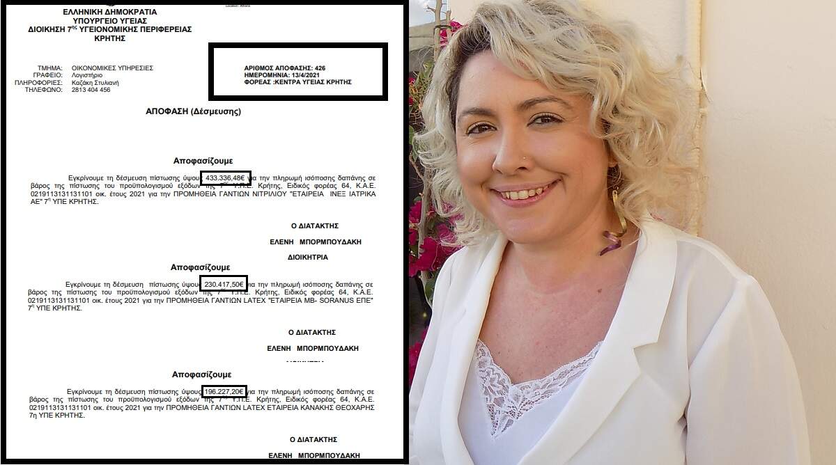 Το “κράτος” των “αρίστων” στην ΥΠΕ Κρήτης συνεχίζει το πάρτι με τα χρήματα του δημοσίου. Μετά τις απευθείας αναθέσεις περίπου 8 εκατομμυρίων ευρώ, τις οποίες αποκάλυψε το Candiadoc, μόλις πριν 2 ημέρες η “άριστη” διοικήτρια, Ελένη Μπορμπουδάκη (που προφανώς νιώθει ανεξέλεγκτη, διορίζοντας από το παράθυρο εκατοντάδες μη υγειονομικούς – ακόμα και την αδερφή της!- και δίνοντας εκατομμύρια με αναθέσεις, χωρίς διαγωνισμούς, στο όνομα πάντα της πανδημίας…) συνέχισε τη “φάμπρικα” με τις αδιαφανείς διαδικασίες με το δημόσιο χρήμα.