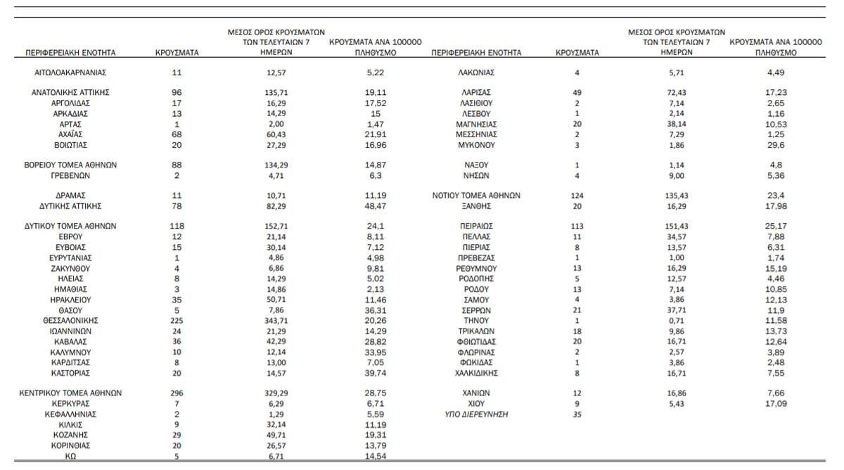 θεωρούνται σχετιζόμενα με ταξίδι από το εξωτερικό και 3.374 είναι σχετιζόμενα με ήδη γνωστό κρούσμα.
