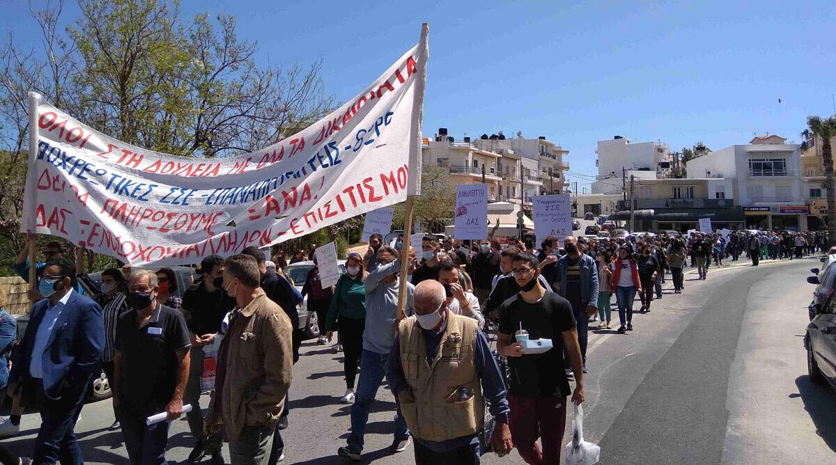 Μετά τη συγκέντρωση ακολούθησε πορεία στους κεντρικούς δρόμους της πόλης. Κατατέθηκε ψήφισμα με τα αιτήματα των σωματείων στην Περιφέρεια Κρήτης, ενώ η πορεία ολοκληρώθηκε με παράσταση διαμαρτυρίας στα γραφεία του Σώματος Επιθεώρησης Εργασίας.