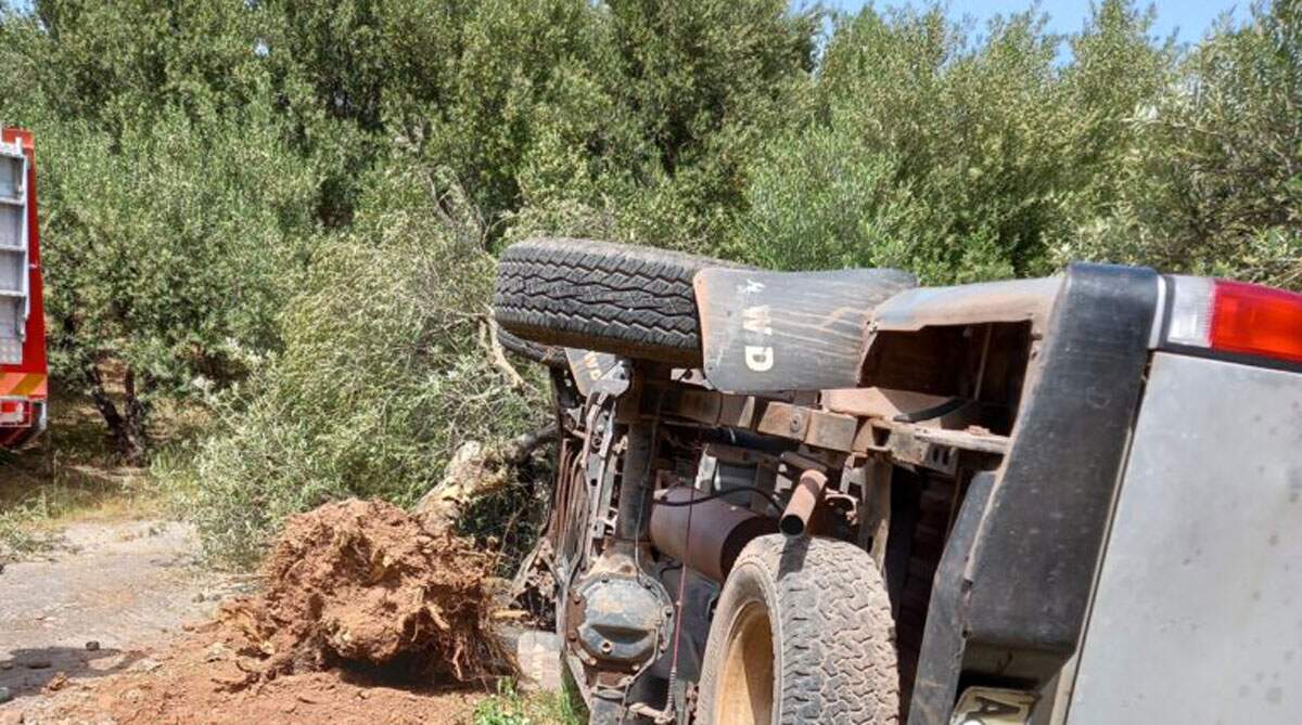 Το αυτοκίνητο, όπως είπε ο κ. Φουσκολαγουδάκης προσέκρουσε σε ρίζα ελιάς που καταστράφηκε ολοσχερώς.