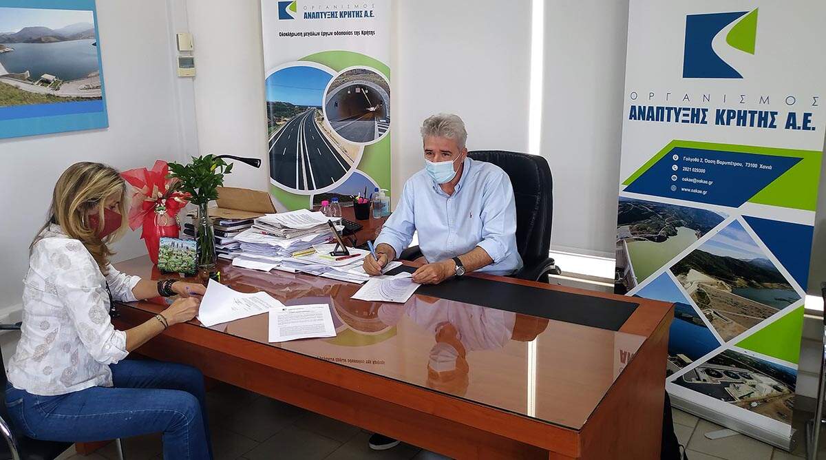 «Για μια ακόμη φορά, ο Ο.Α.Κ. στέκεται αρωγός για την κάλυψη βασικών αναγκών, της αυτοδιοίκησης κι ένα παραπάνω «αδύναμων» δήμων, με περιορισμένη υπηρεσιακή επάρκεια. Το Πρόγραμμα «Φιλόδημος ΙΙ» μας έδωσε αυτή την δυνατότητα και σε άριστη συνεργασία με τον Δήμο Γαύδου και την Δήμαρχο κ. Στεφανάκη, καταφέραμε να ολοκληρώσουμε με επιτυχία το γραφειοκρατικό σκέλος της συγκεκριμένης προμήθειας φτάνοντας σήμερα στο σημείο, να υπογράψουμε την τελική της σύμβαση», δήλωσε αμέσως μετά την ολοκλήρωση της υπογραφής της σύμβασης του έργου στα γραφεία του Ο.Α.Κ. στην Αγυιά, ο Διευθύνων Σύμβουλος του Οργανισμού Ανάπτυξης Κρήτης, κ. Άρης Παπαδογιάννης.