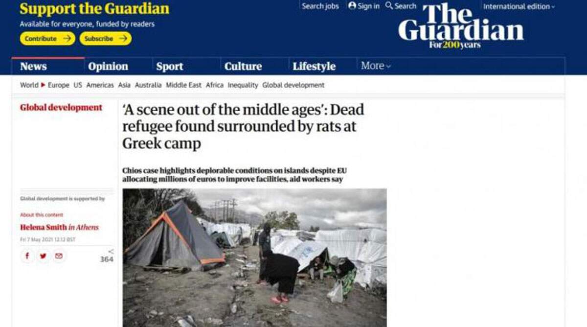 Αν και ο θάνατος του 28χρονου μετανάστη προήλθε σύμφωνα με το υπουργείο Μετανάστευσης και Ασύλου από εισρόφηση, δημοσίευμα του Guardian αναφέρεται εκτενώς στις κάκιστες συνθήκες που ζουν οι πρόσφυγες και μετανάστες κάνοντας λόγο για εικόνες Μεσαίωνα στην Ελλάδα. Χαρακτηριστικά, ο τίτλος του δημοσιεύματος αναφέρει: «Εικόνα βγαλμένη από τον Μεσαίωνα – Νεκρός πρόσφυγας περιτριγυρισμένος από αρουραίους».