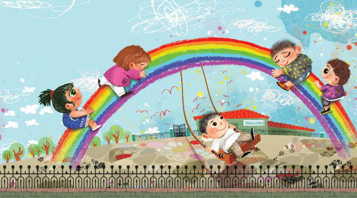 Πρόκειται για ένα τρυφερό παραμύθι που μιλάει για την έλλειψη επικοινωνίας στις μεγαλουπόλεις, για τη δύναμη της διαφορετικότητας, για τον σχολικό εκφοβισμό και για το ουράνιο τόξο που κρύβουν μέσα τους τα παιδιά, την ελπίδα για ένα κόσμο γεμάτο χρώματα.