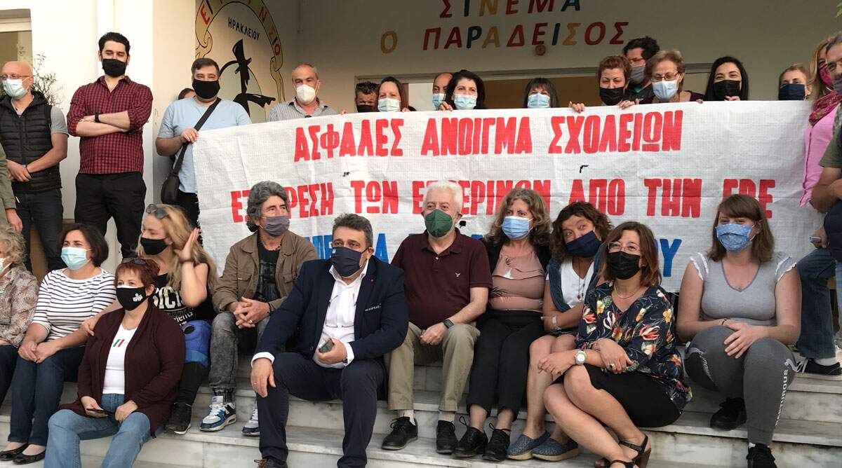 Στην παράσταση διαμαρτυρίας των Εσπερινών Λυκείων Ηρακλείου έδωσε το παρών ο βουλευτής Ηρακλείου του ΣΥΡΙΖΑ Νίκος Ηγουμενίδης συμπαραστεκόμενος στον αγώνα που δίνουν μαθητές και καθηγητές να μην εφαρμοστεί η ελάχιστη βάση εισαγωγής για τους μαθητές.
