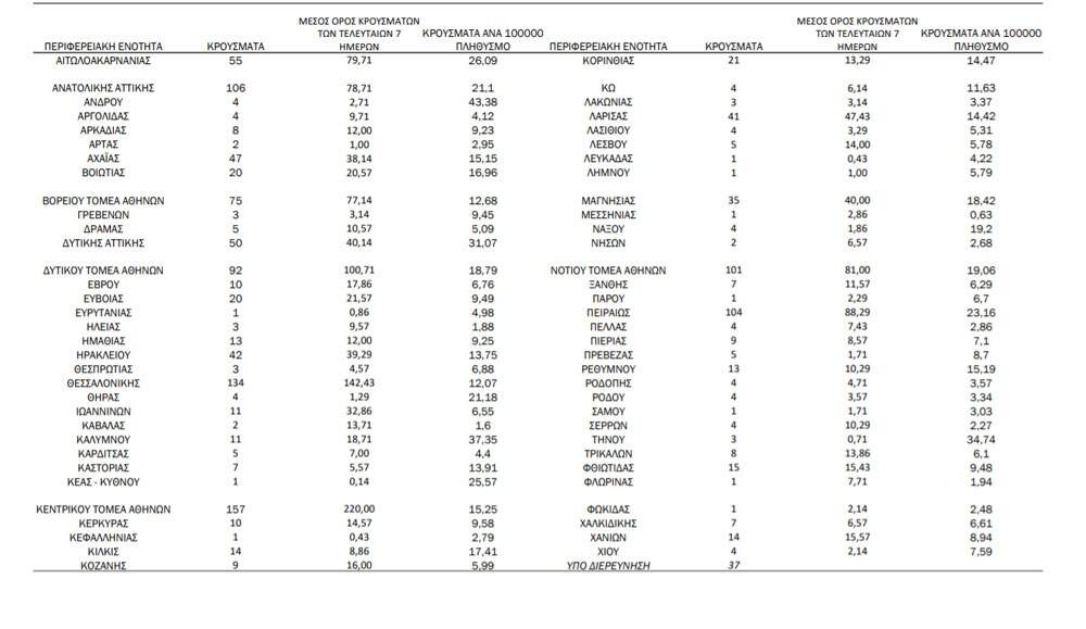 1 Με βάση τα επιβεβαιωμένα κρούσματα των τελευταίων 7 ημερών, 38