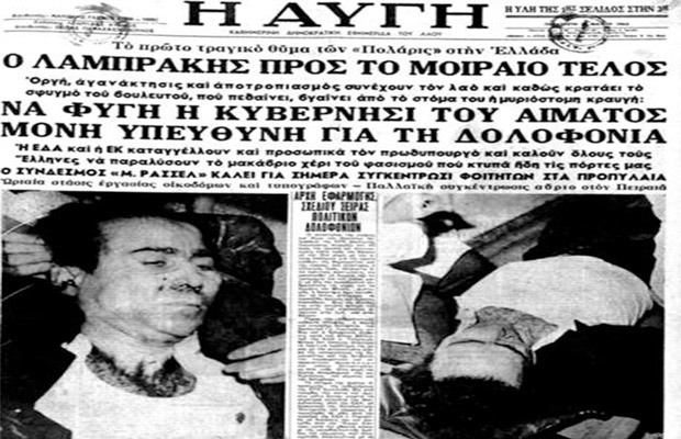 Στα τέλη του Μαΐου του 1963, ακριβώς πριν 58 χρόνια, η Ελλάδα συγκλονιζόταν από την υπόθεση της δολοφονίας του Γρηγόρη Λαμπράκη. Ο συνεργαζόμενος με την ΕΔΑ γιατρός και παλιότερα βαλκανιονίκης στο στίβο, αγωνιστής της ειρήνης, είχε χτυπηθεί από παρακρατικούς στη Θεσσαλονίκη, ενώ είχε ολοκληρώσει ομιλία του. Από το βράδυ της Τετάρτης 22 Μαΐου ήταν κλινικά νεκρός. Εξέπνευσε μερικές ημέρες αργότερα, στις 27 Μαΐου.